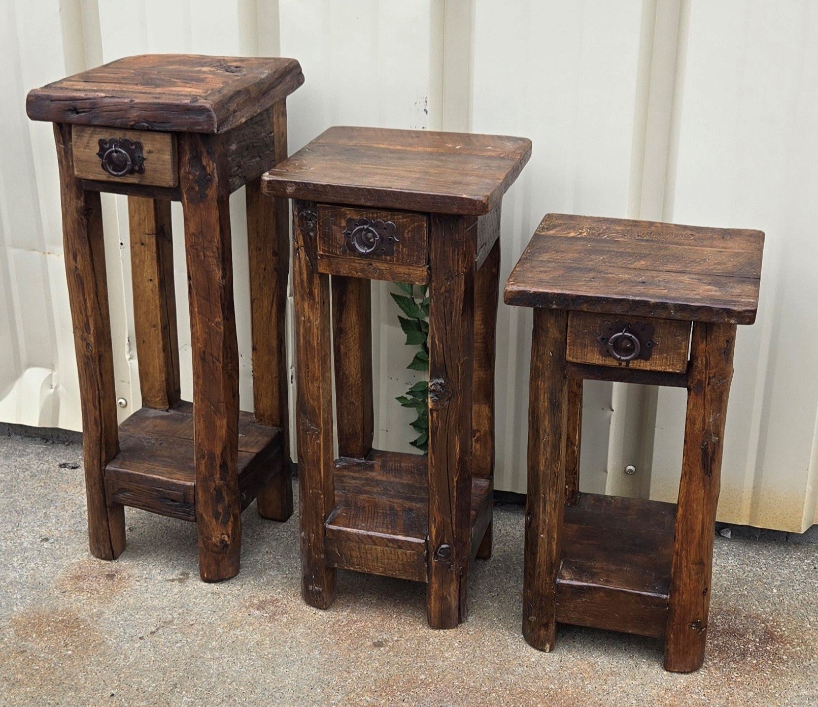 Next to your window, bed, or couch, these small tables are a perfect way to bring big rustic vibes to any room. They are made from solid ponderosa pine with a rough sawmill finish and feature one small drawer.