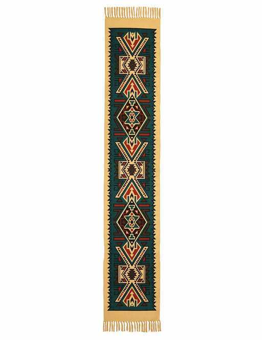 Elevate your home décor with the bold and intricate patterns of our "Turquoise Sunburst" Cotton Stenciled Table Runner. Featuring a stunning combination of radiant geometric motifs and a rich turquoise backdrop, this runner brings warmth, tradition, and artistry to any space.